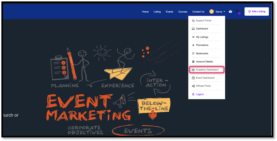 After successfully logging in, open the “Account Profile” menu, then select “Academy Dasboard”