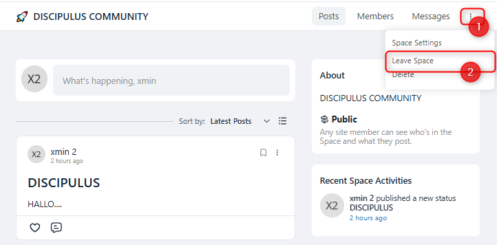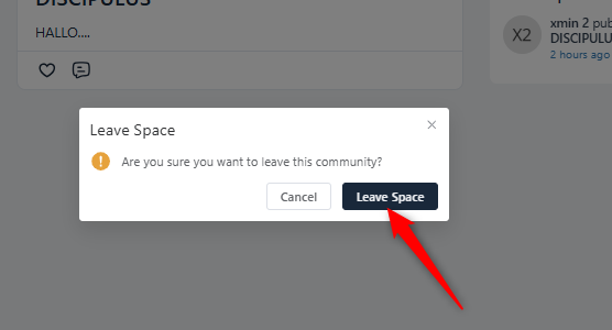 3. Confirm leaving your Space by clicking “Leave Space”.
