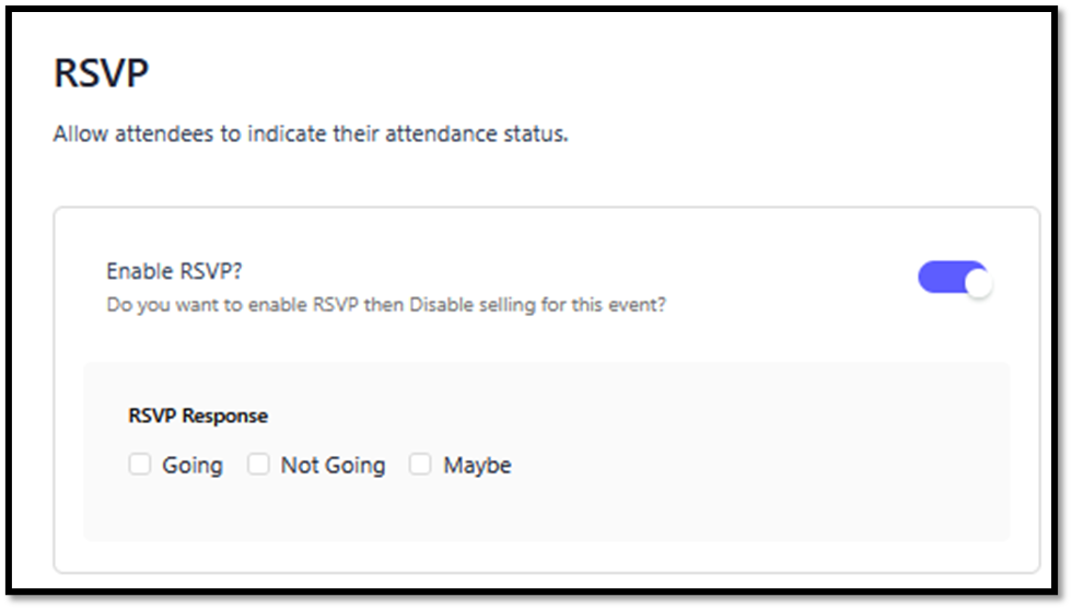 Activate the “Enable RSVP” toggle. A selection of responses will be displayed for participants: