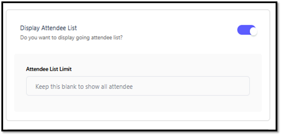 Enable Display Attendee List to display anyone who selects “Going”. If you want to limit the number displayed, fill in the Attendee List Limit section. Leave blank if you want to display all attendees.